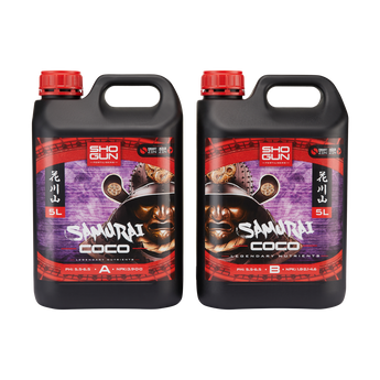 Samurai Coco is Shogun’s flagship two-part base nutrient, formulated specifically for coco coir’s unique chemistry. With the combined power of SmartZen® Maximiser and AquaZen® Slow Water technology, Samurai Coco goes beyond standard feeds to deliver stronger roots, more efficient nutrient uptake, and consistently higher yields.